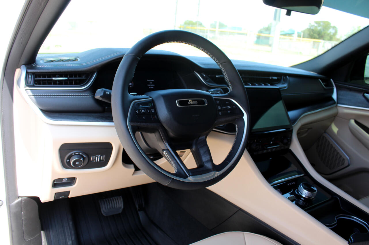 For sale: is a 2025 Jeep Grand Cherokee L Limited 4x4, a one-owner SUV with only 10,629 miles and still under factory warranty. Powered by the reliable 3.6L V6 engine, this vehicle combines strength, comfort, and versatility. Finished in Bright White with a Global Black interior, it features the desirable Black Appearance Package and Preferred Package 22E for added style and convenience. Inside, the spacious cabin offers a second-row 60/40 bench, making it the perfect family SUV with plenty of room for passengers and cargo. Extremely nice and well cared for, this Grand Cherokee L is a great opportunity for anyone seeking a capable and luxurious SUV.